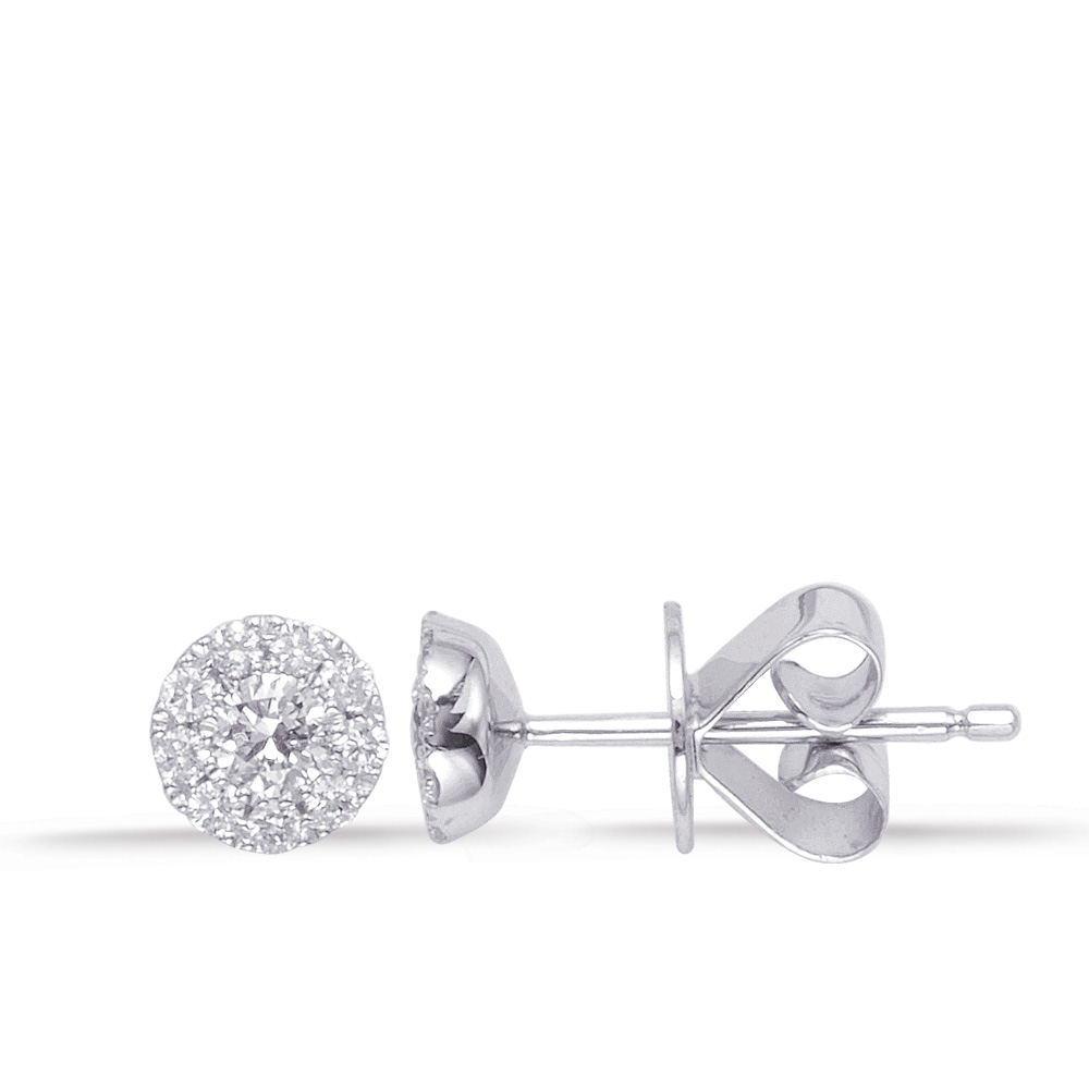 These earrings are available in 14K White Gold. There are a total of 20 stones. There are round diamonds with a total carat weight of 0.31ct set in a Micro Prong setting