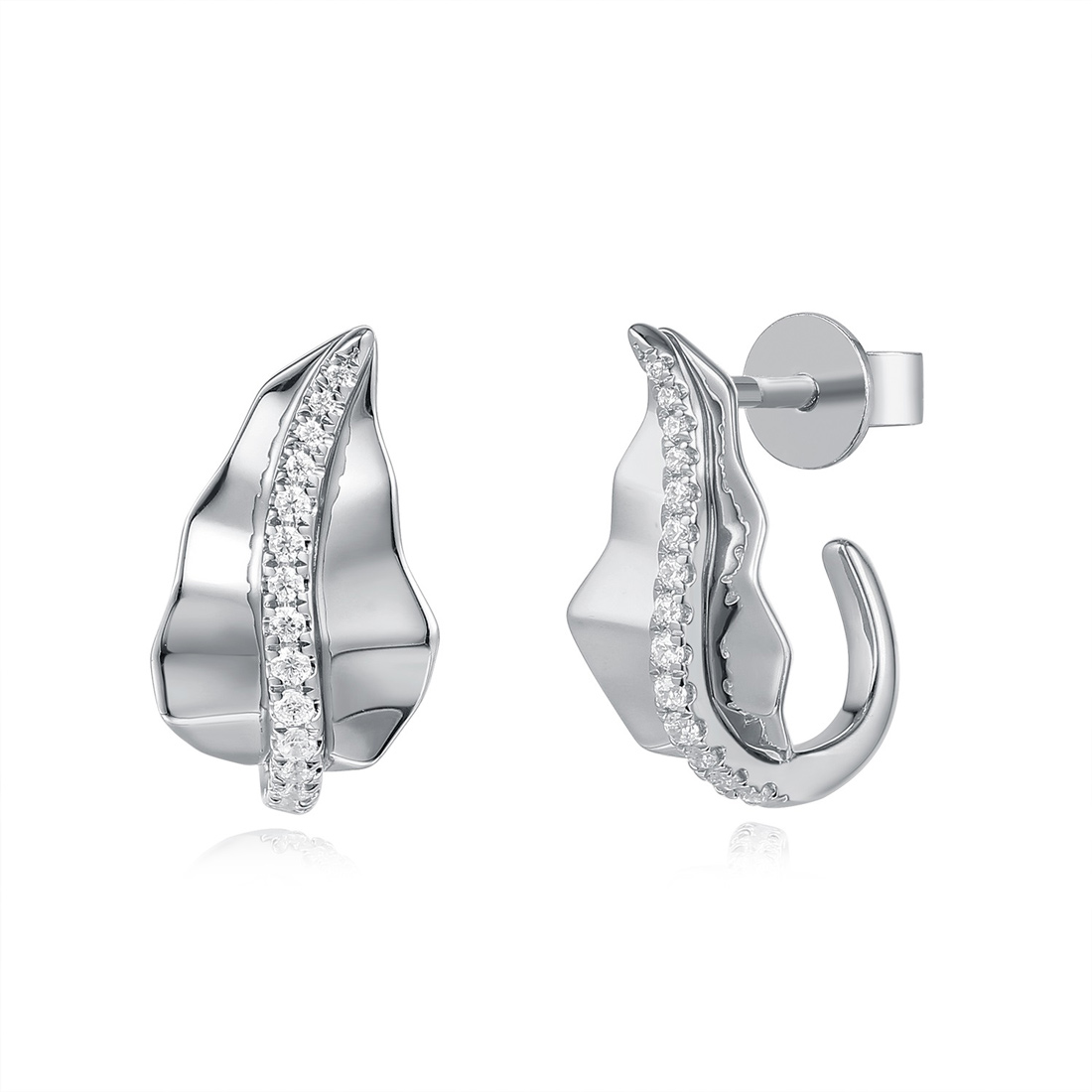 These earrings are available in 14K White Gold. There are a total of 28 stones. There are round diamonds with a total carat weight of 0.15ct set in a Micro Prong setting