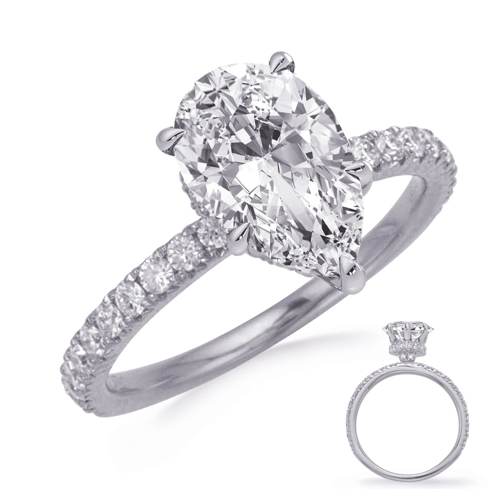This engagement ring is available in 14K White Gold. There are a total of 48 stones. There are round diamonds with a total carat weight of 0.56ct set in a Micro Prong setting