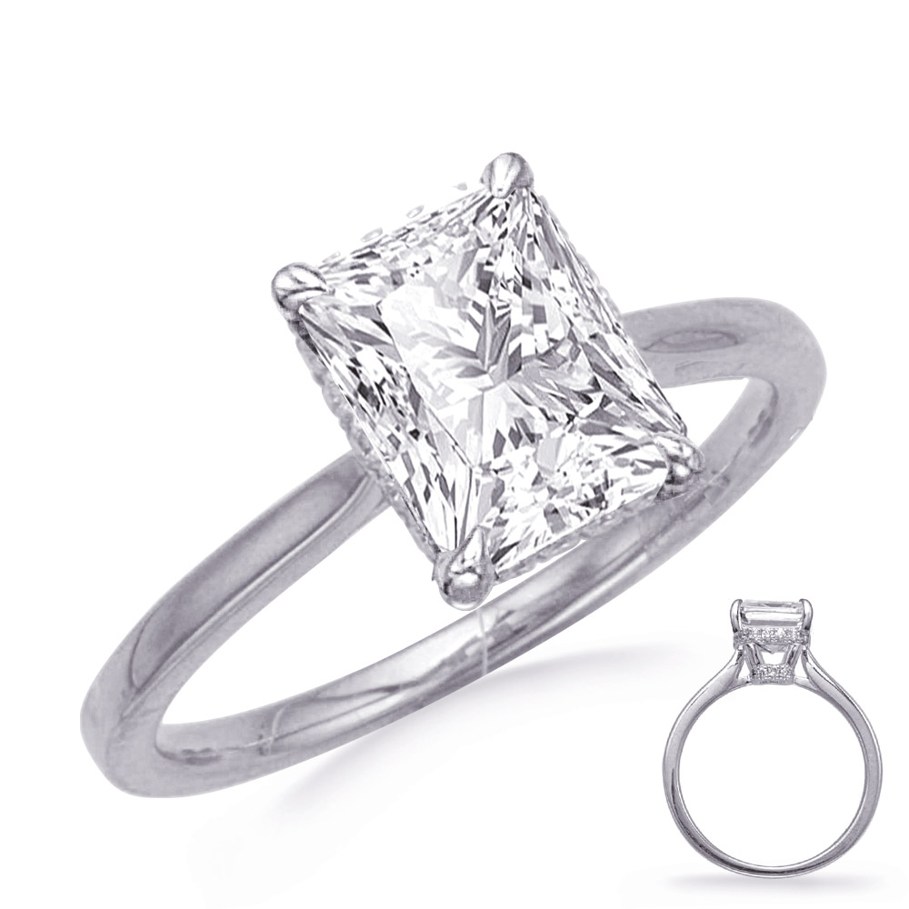 This engagement ring is available in 14K White Gold. There are a total of 36 stones. There are round diamonds with a total carat weight of 0.34ct set in a Micro Prong setting