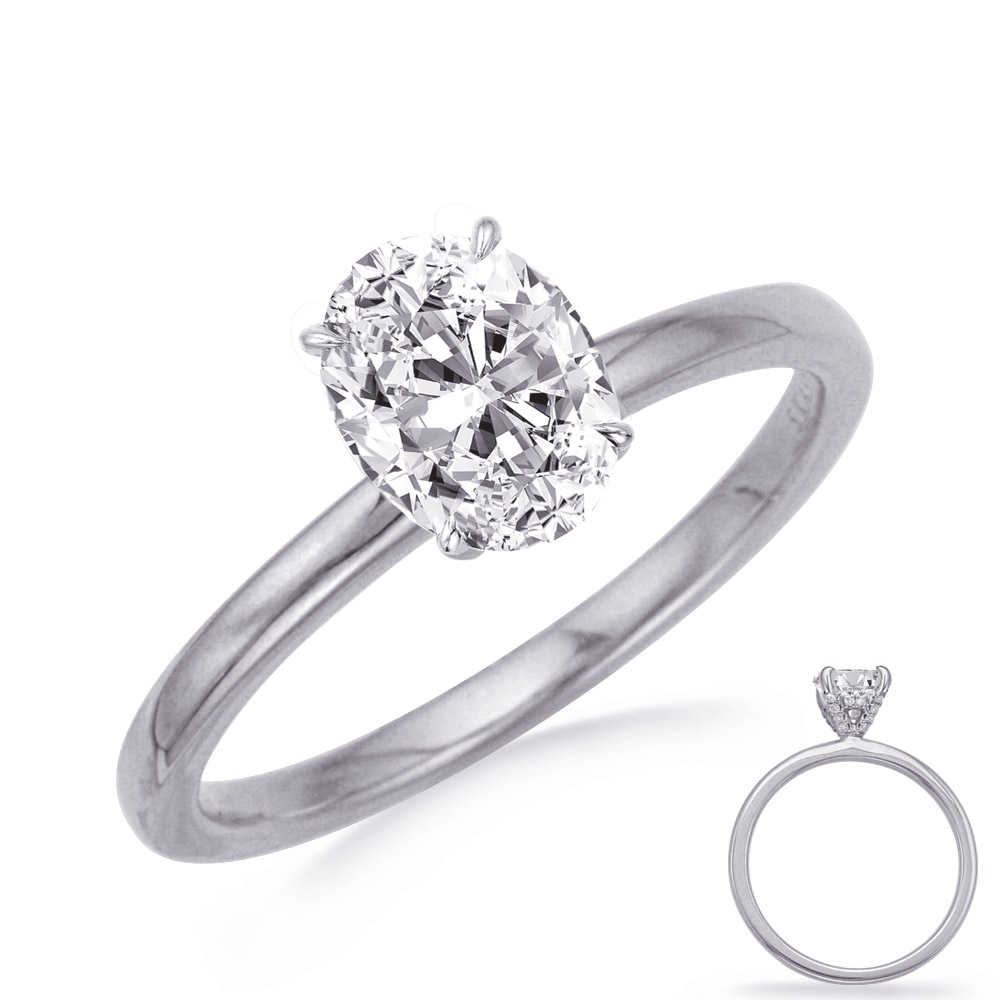 This engagement ring is available in 14K White Gold. There are a total of 44 stones. There are round diamonds with a total carat weight of 0.13ct set in a Micro Prong setting
