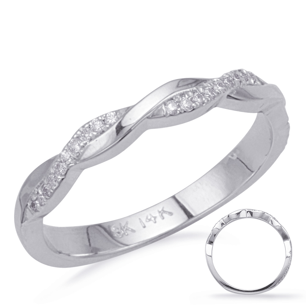 This band is available in 14K White Gold. There are a total of 38 stones. There are round diamonds with a total carat weight of 0.15ct set in a Micro Prong setting