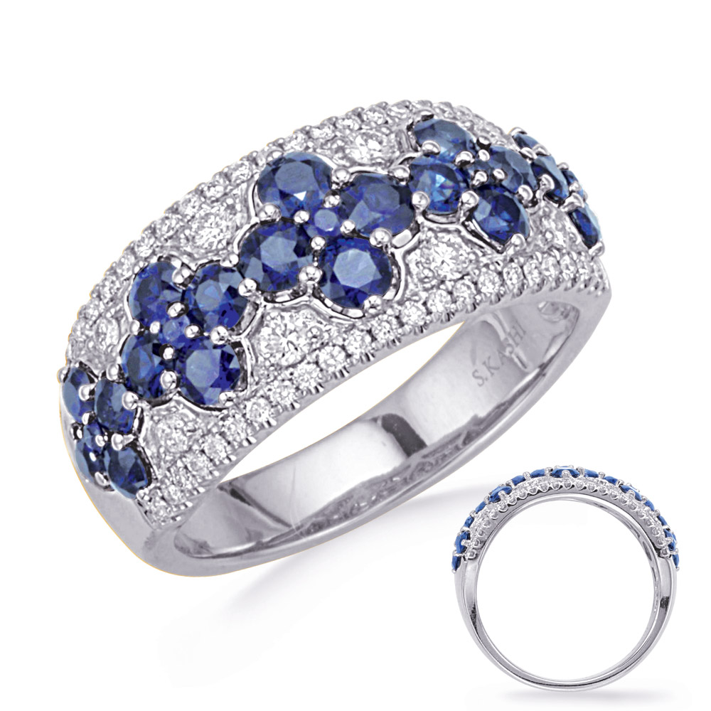 This color rings - preciou is available in 14K White Gold. There are a total of 75 stones. There are round diamonds with a total carat weight of 0.34ct set in a Prong Set setting there are sapphire diamonds with a total carat weight of 1.61ct set in a Prong Set setting.